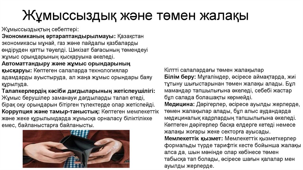 Жұмыссыздық және төмен жалақыЖұмыссыздықтың себептері: