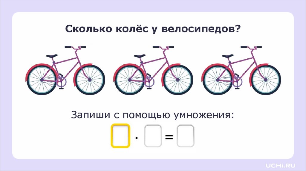 Сколько колёс у велосипедов?Запиши с помощью умножения: