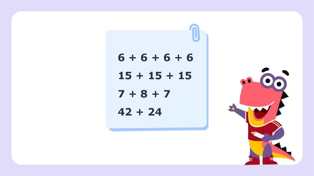 6 + 6 + 6 + 6 = 246 · 4 = 24
