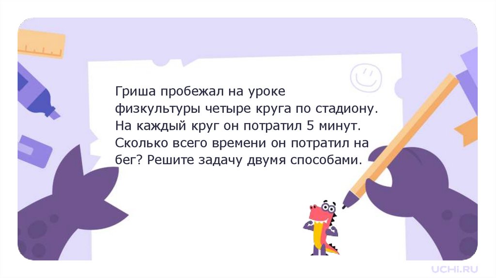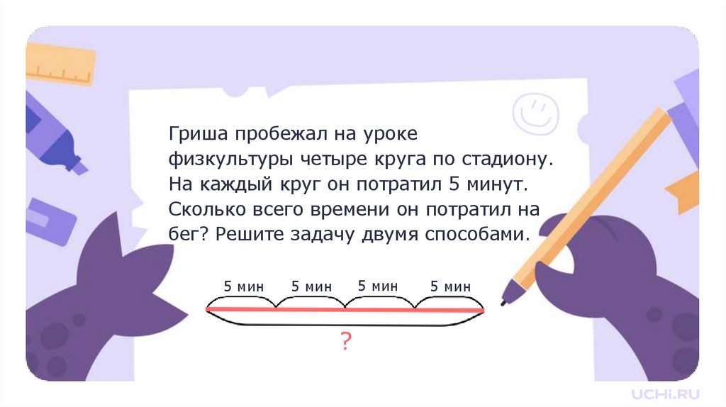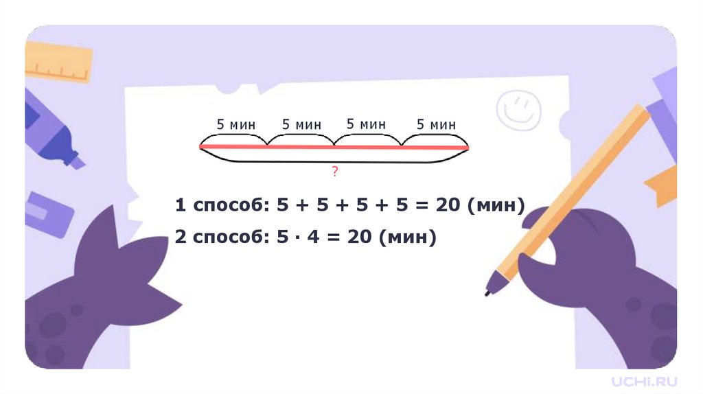 1 способ: 5 + 5 + 5 + 5 = 20 (мин)