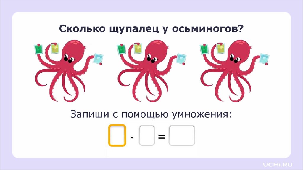 Сколько щупалец у осьминогов?Запиши с помощью умножения:
