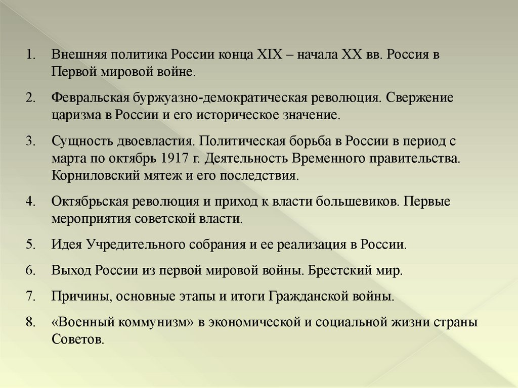 1.Внешняя политика России конца XIX – начала XX вв. Россия в