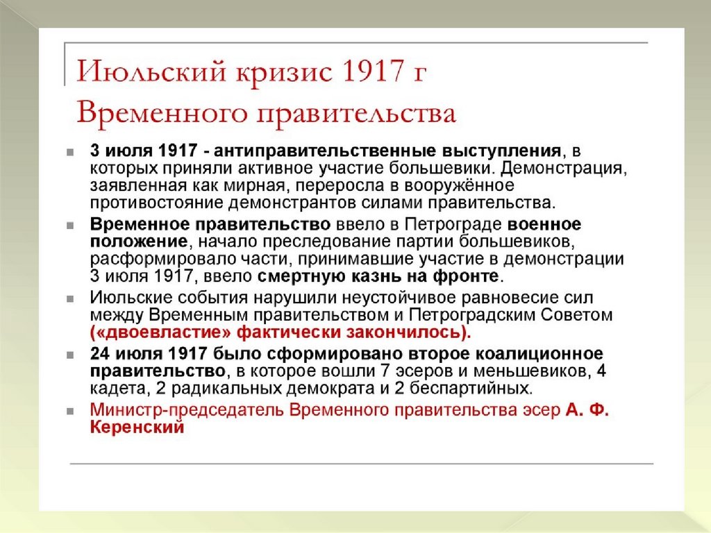 марта по октябрь 1917 г. Деятельность Временного правительства.