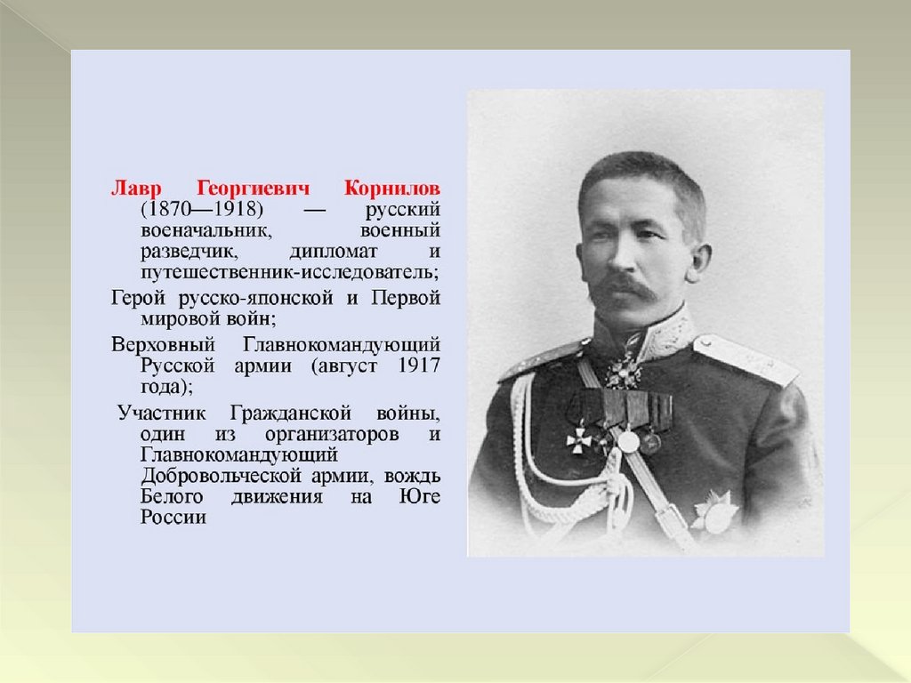 возглавил генерал Л.Г. Корнилов, в