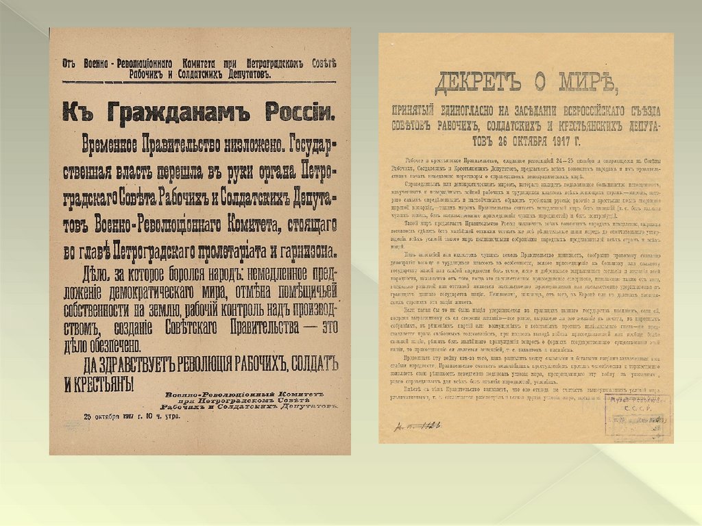 Октябрьская революция и приход к власти большевиков. Первые