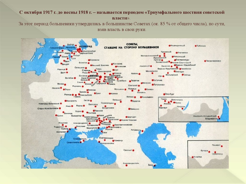 С октября 1917 г. до весны 1918 г. – называется периодом «Триумфального шествия советскойвласти».