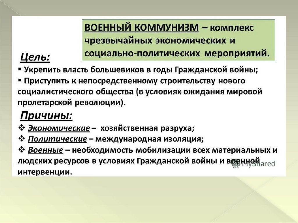 «Военный коммунизм» в экономической и социальной жизни страны