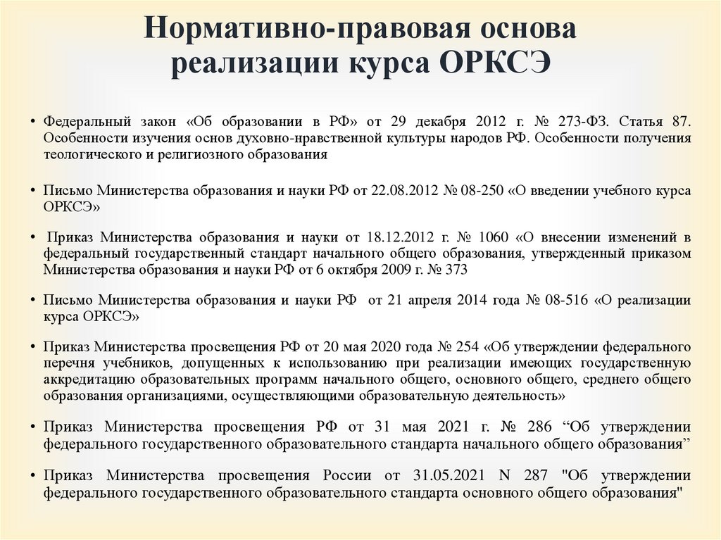 Нормативно-правовая основареализации курса ОРКСЭ