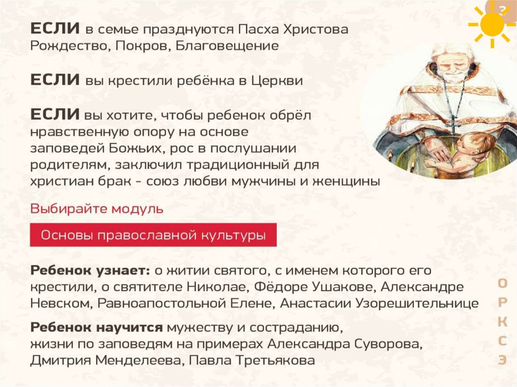 Каждый найдет близкий именно его семейнымтрадициям модуль учебного предмета ОРКСЭ