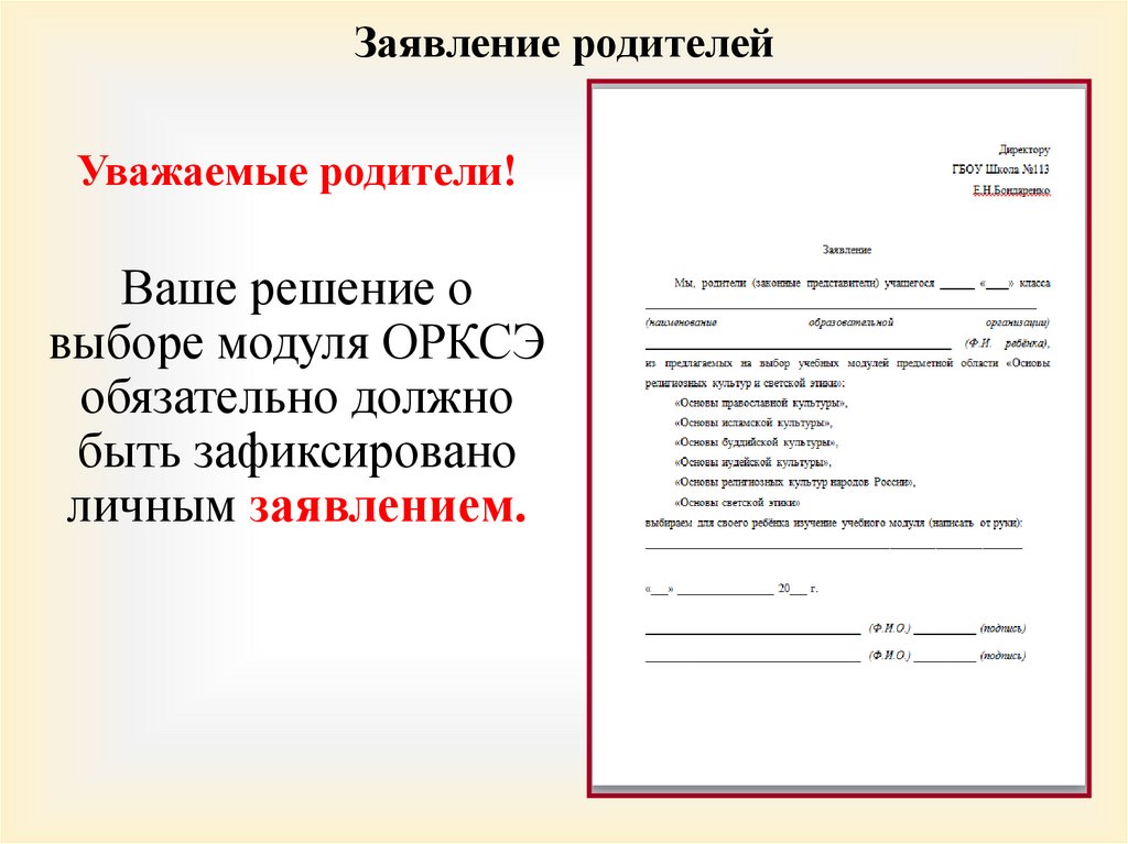 Заявление родителейУважаемые родители!