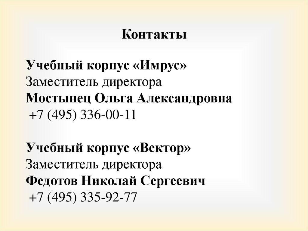 КонтактыУчебный корпус «Имрус»