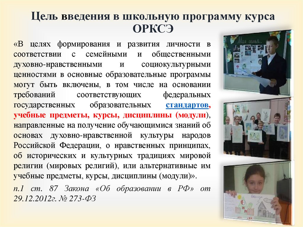 Цель введения в школьную программу курсаОРКСЭ