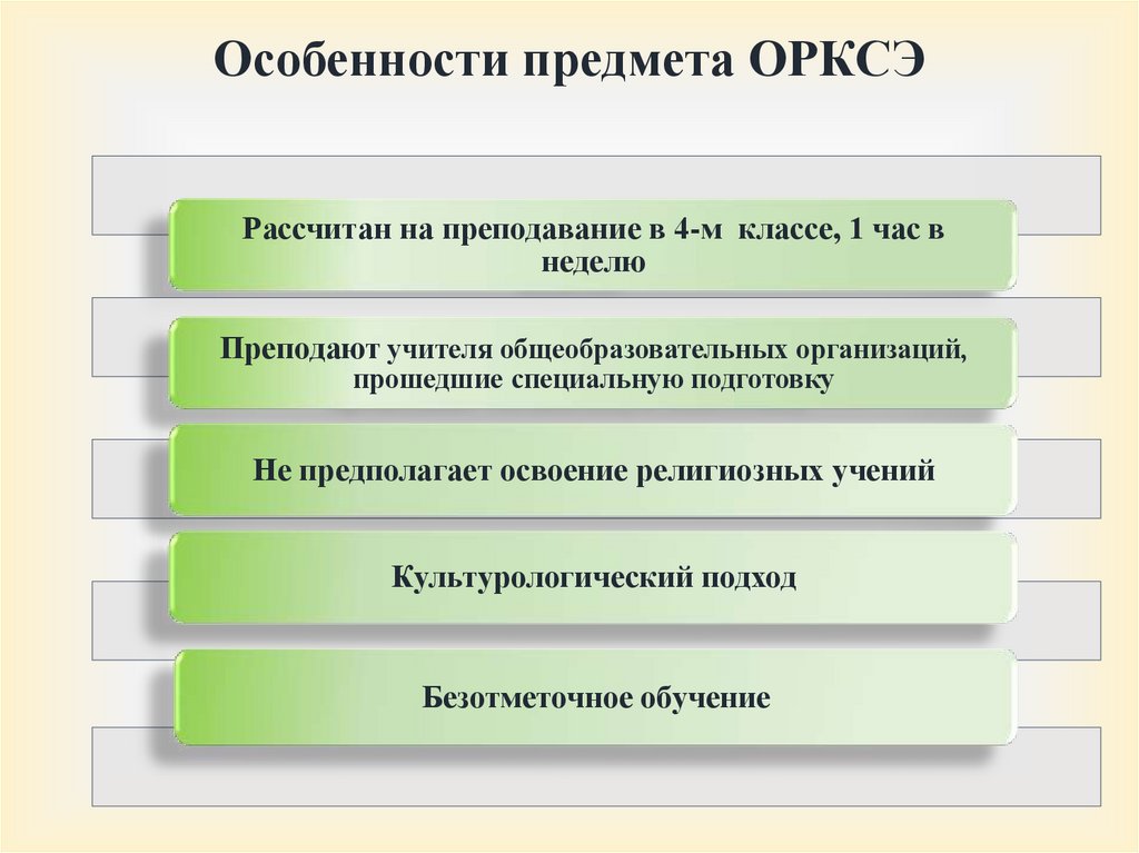 Особенности предмета ОРКСЭРассчитан на преподавание в 4-м классе, 1 час в