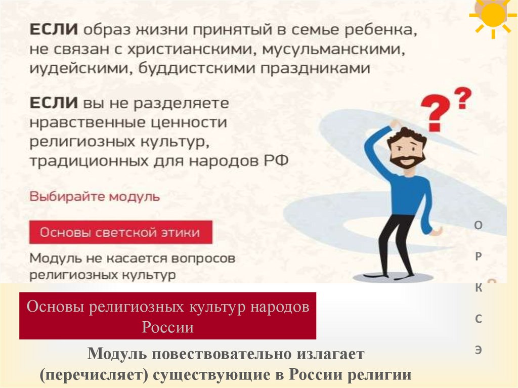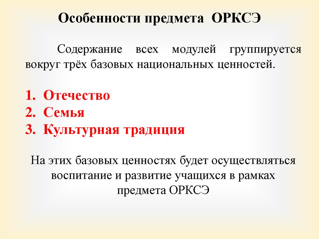 Особенности предмета ОРКСЭСодержание всех модулей группируется