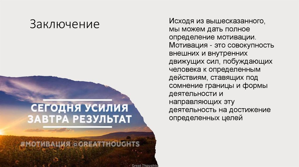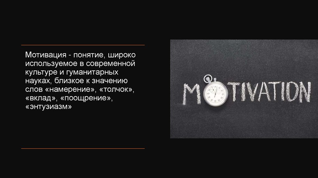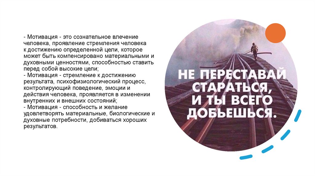 - Мотивация - это сознательное влечениечеловека, проявление стремления человека
