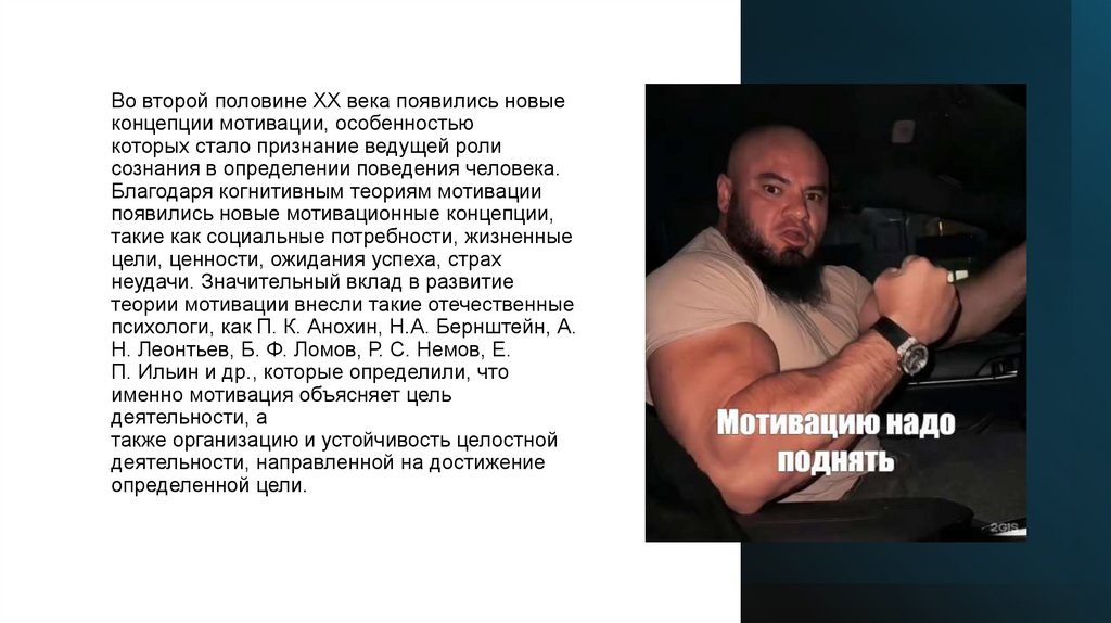 Во второй половине ХХ века появились новыеконцепции мотивации, особенностью