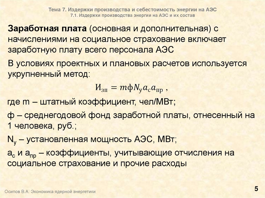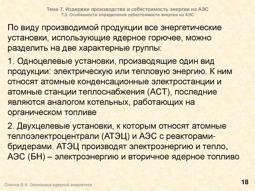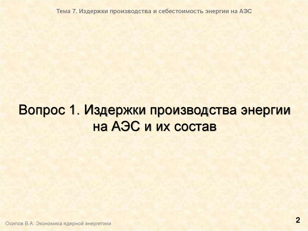 Тема 7. Издержки производства и себестоимость энергии на АЭС7.1. Издержки производства энергии на АЭС и их состав