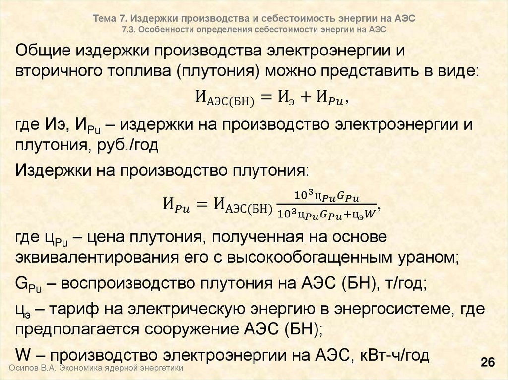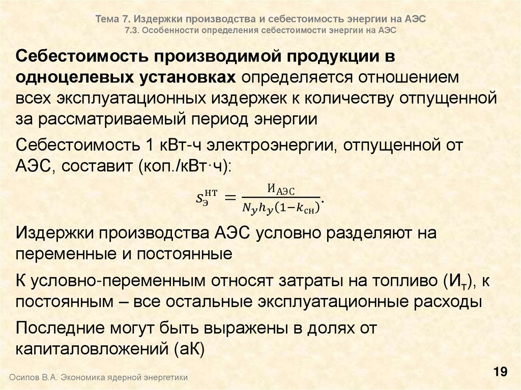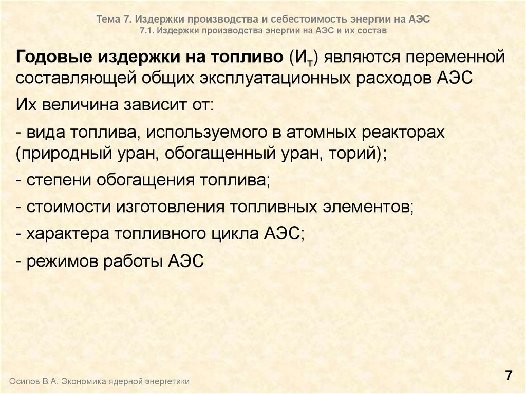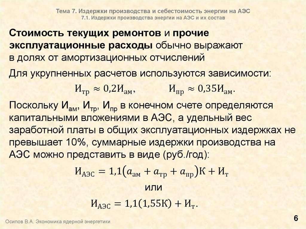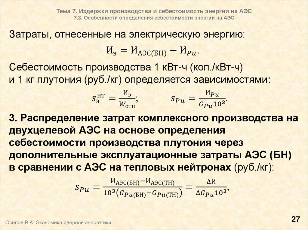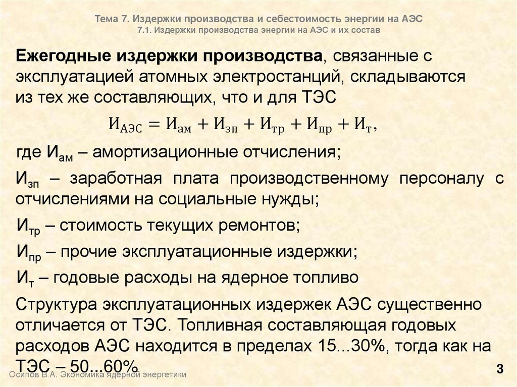 Издержки производства и себестоимость энергии на АЭС (теме 7)
