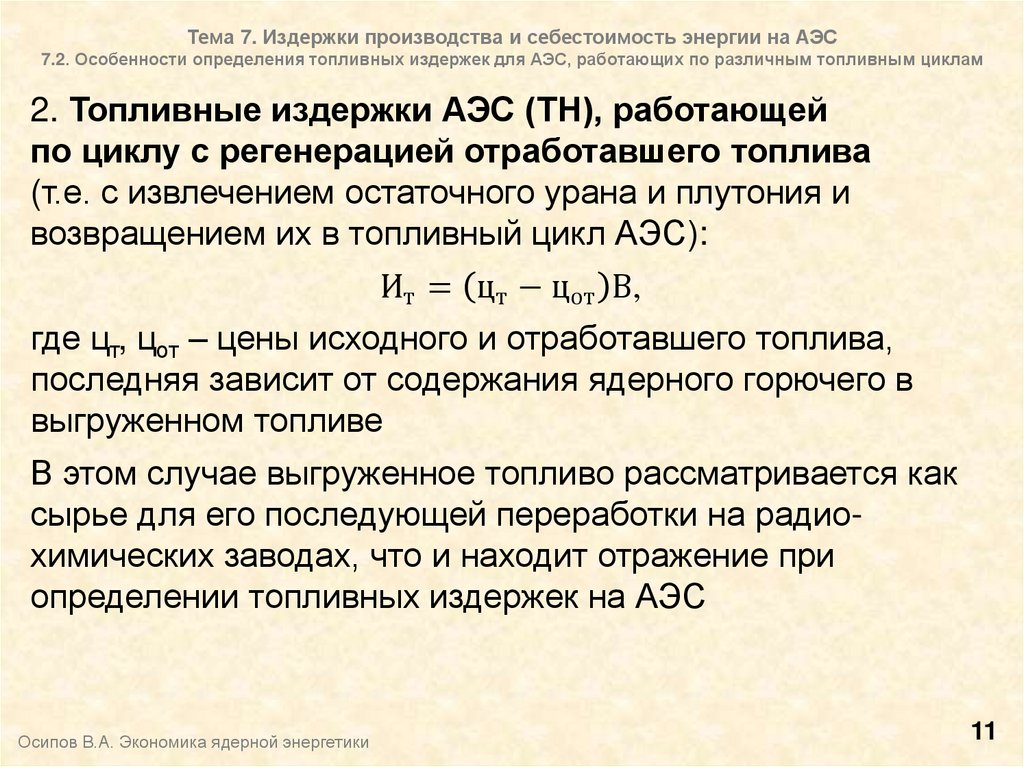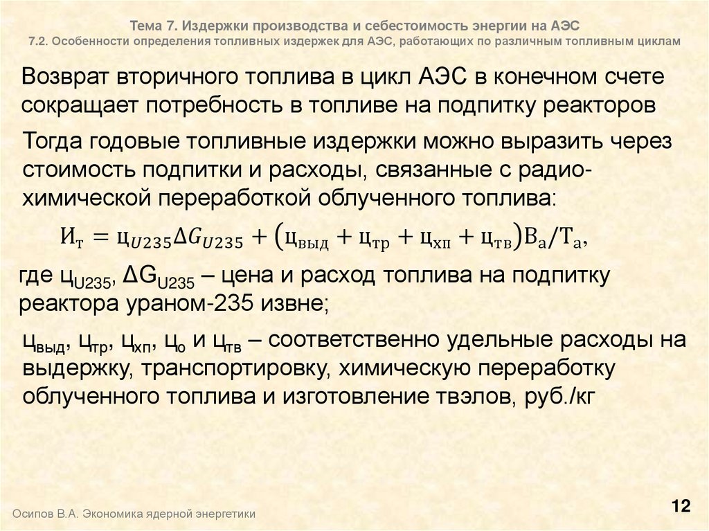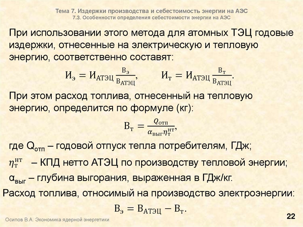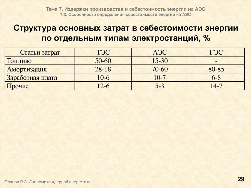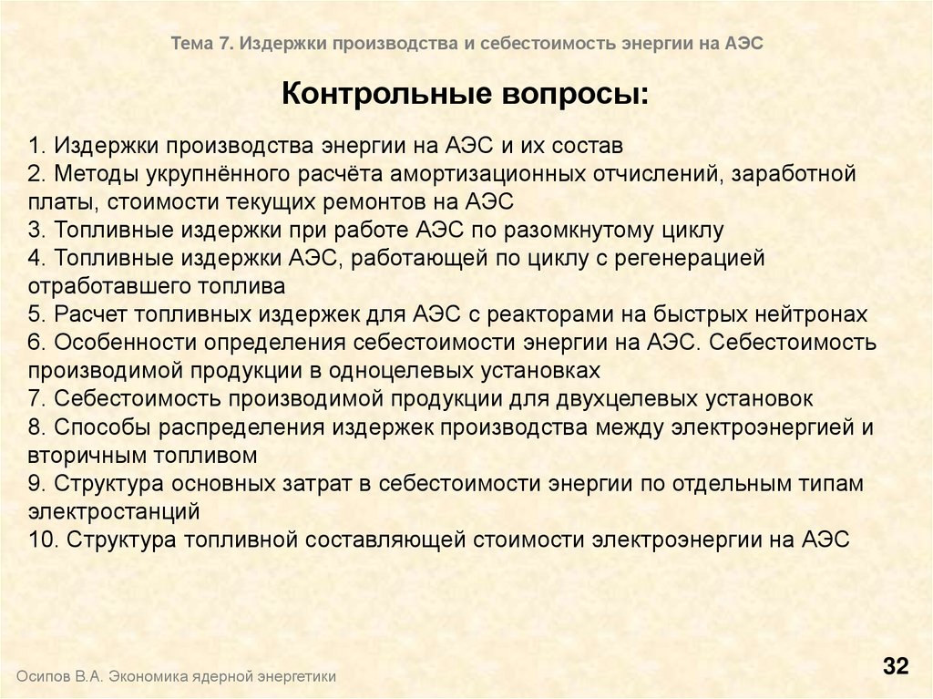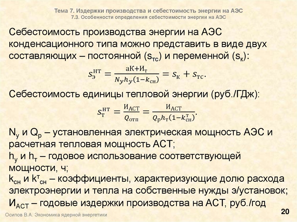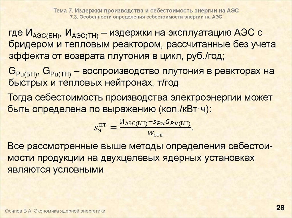 Издержки производства и себестоимость энергии на АЭС (теме 7)