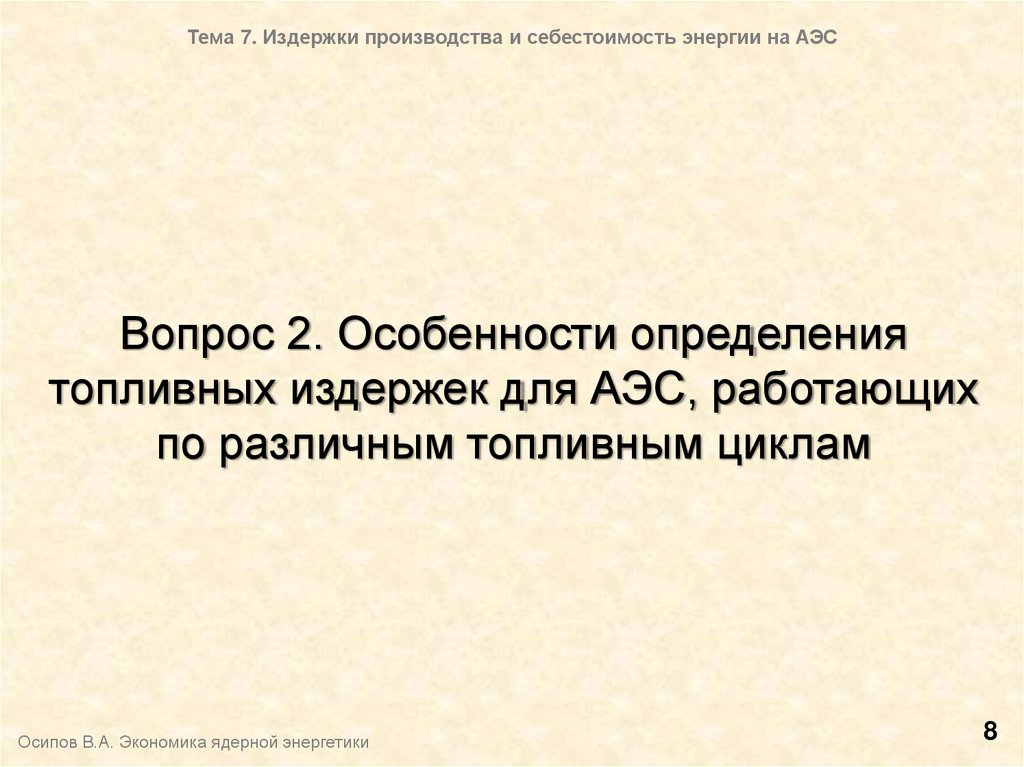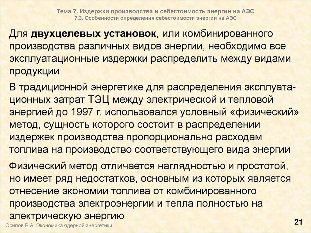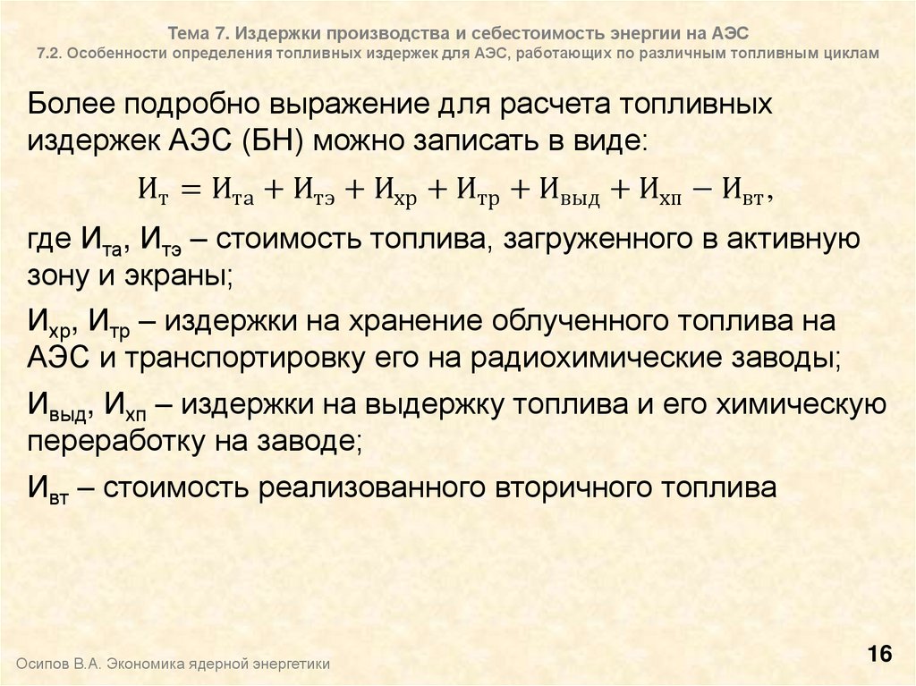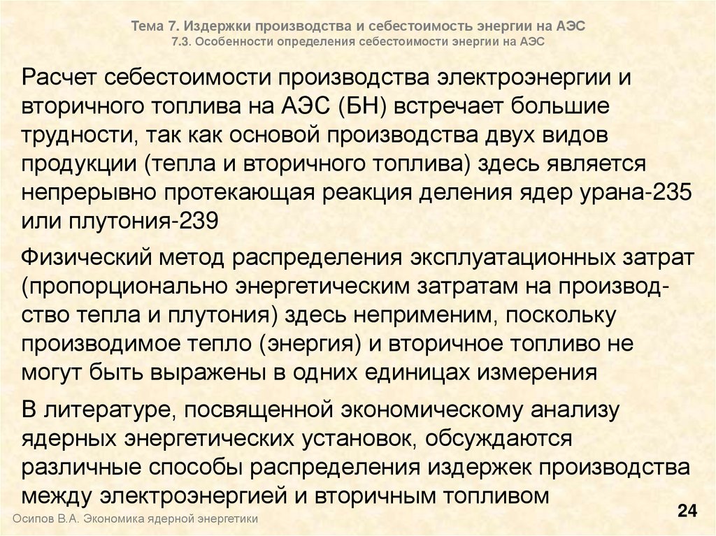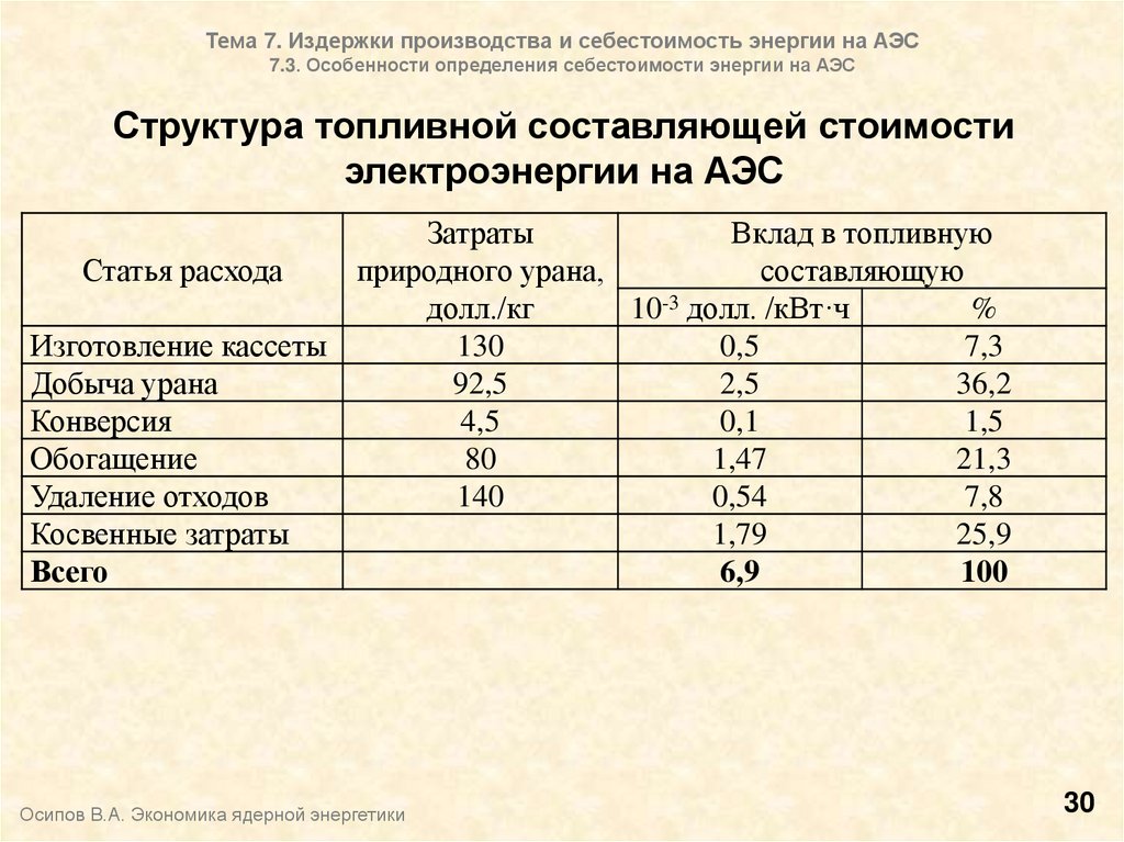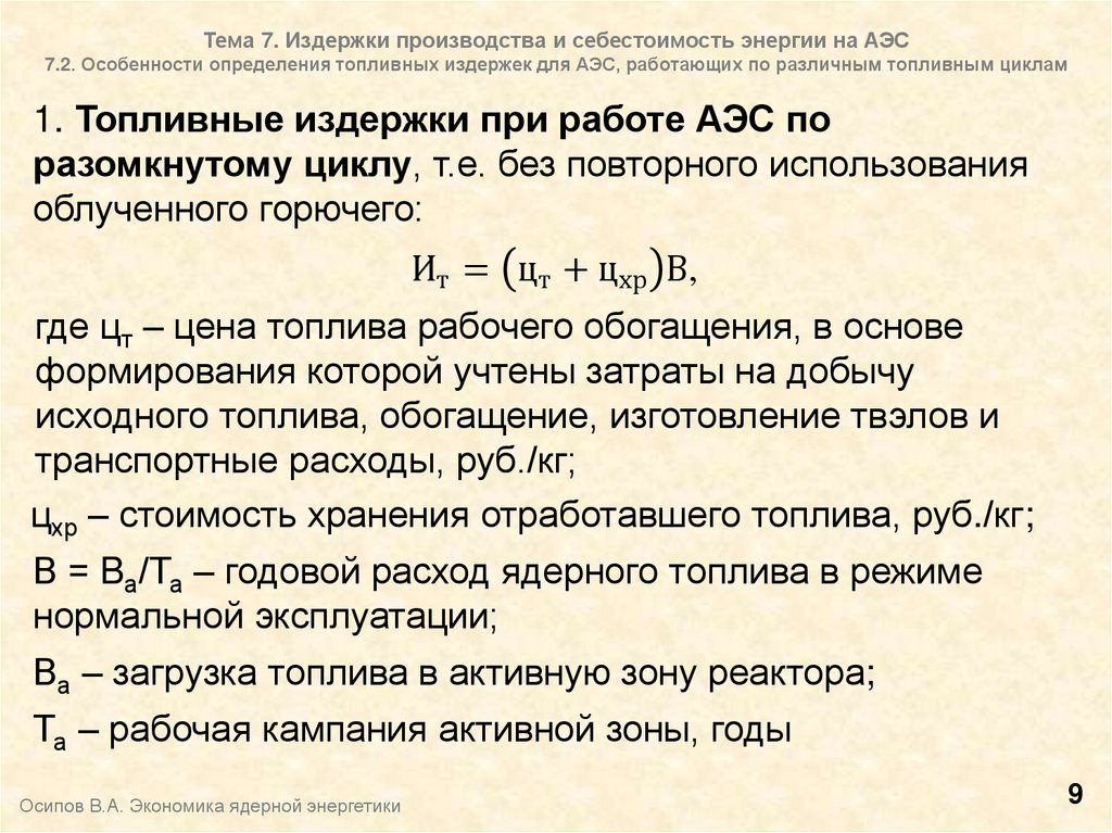 Издержки производства и себестоимость энергии на АЭС (теме 7)