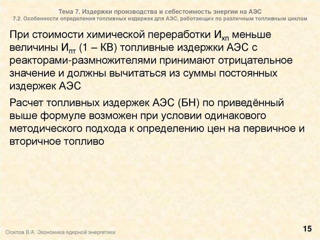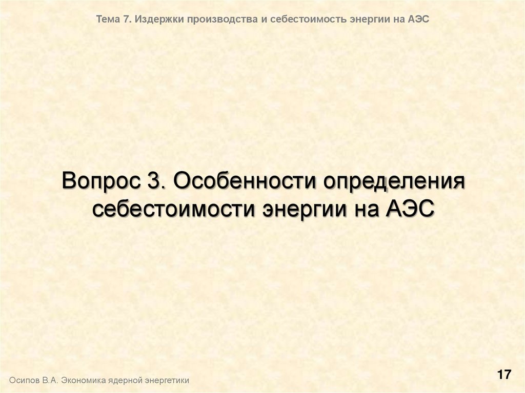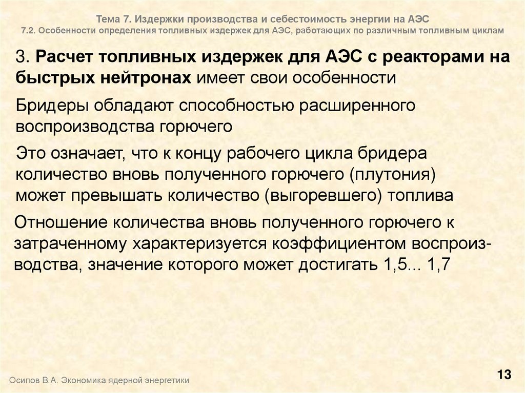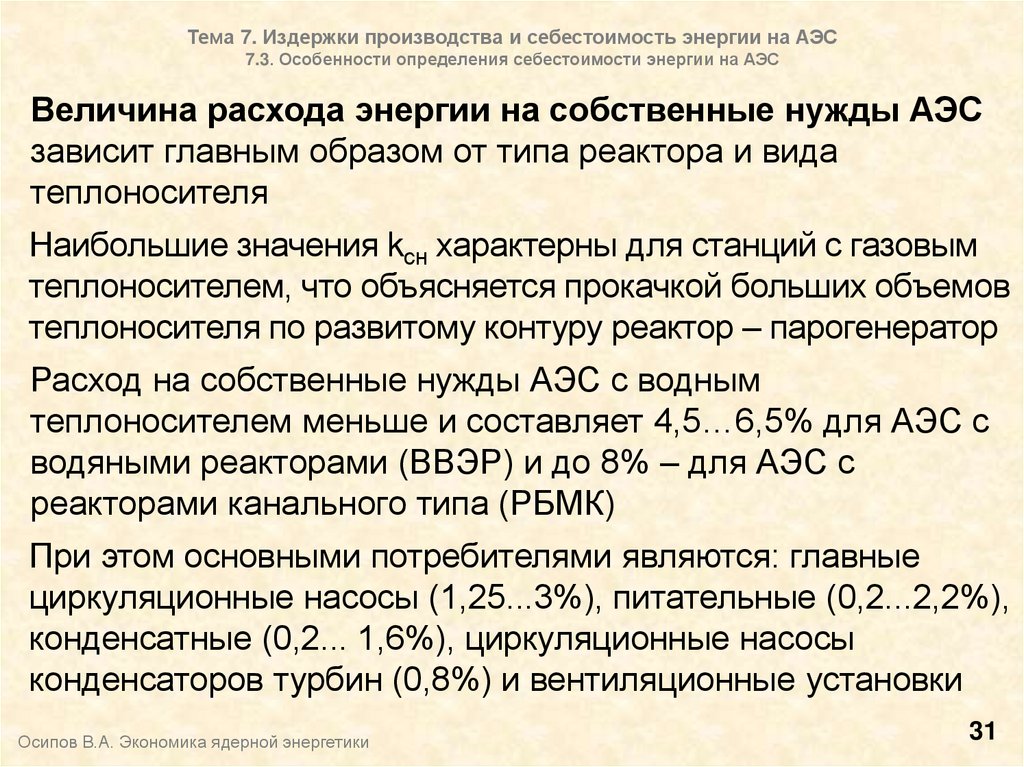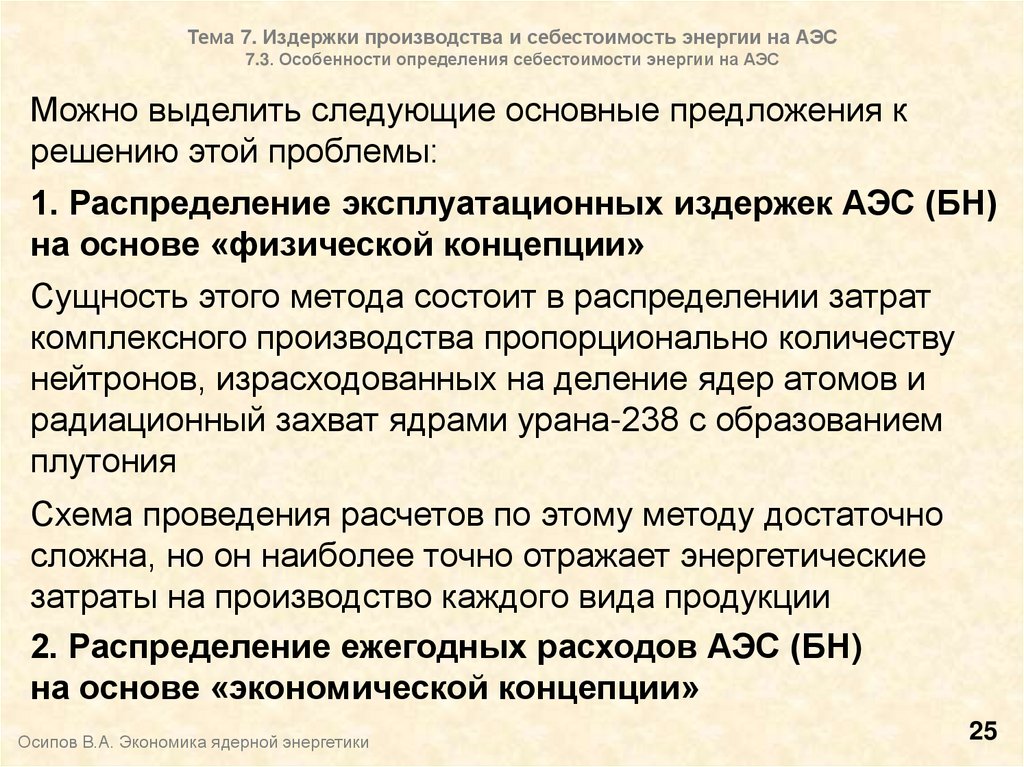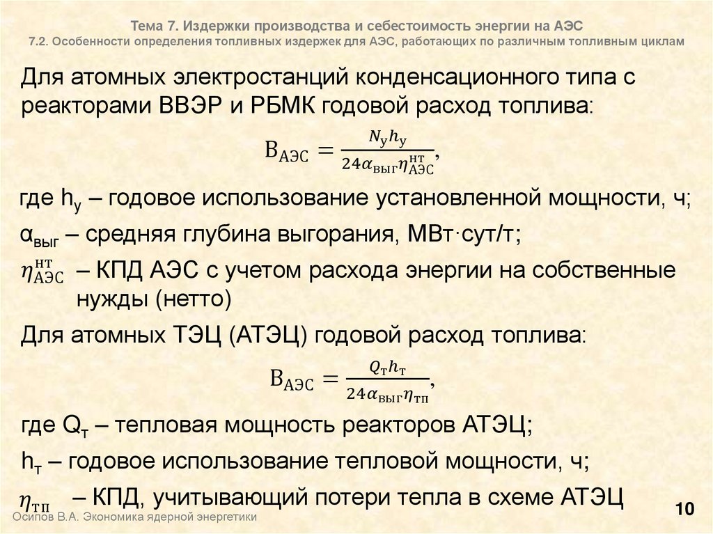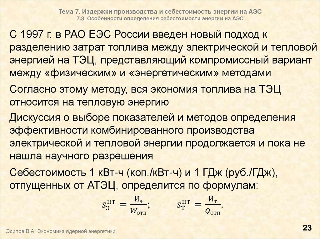 Издержки производства и себестоимость энергии на АЭС (теме 7)