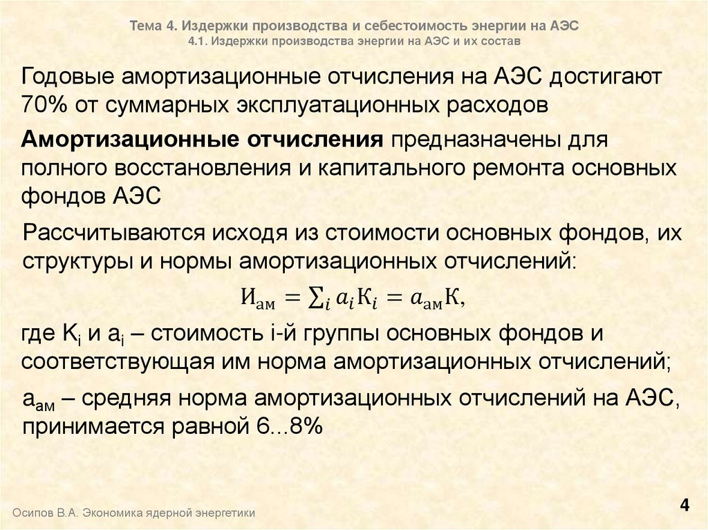 Тема 4. Издержки производства и себестоимость энергии на АЭС4.1. Издержки производства энергии на АЭС и их состав