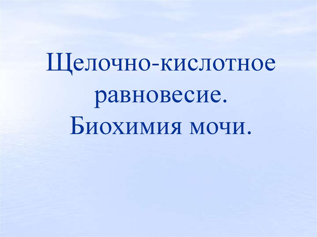1. Щелочно-кислотное равновесие. Биохимия мочи.