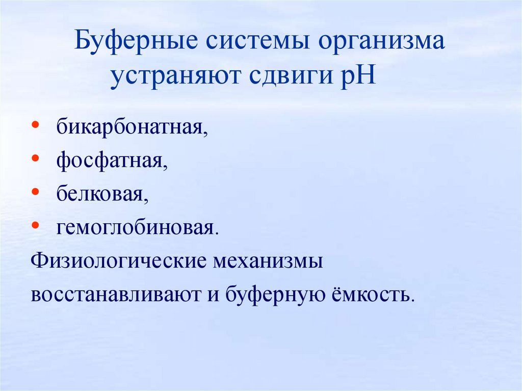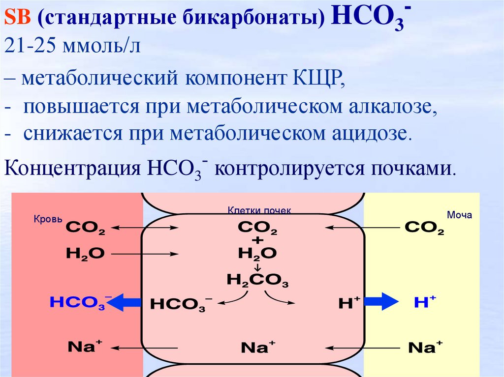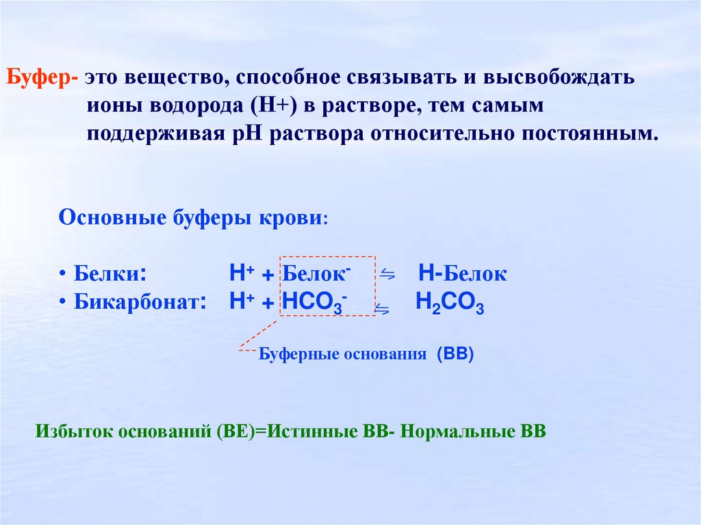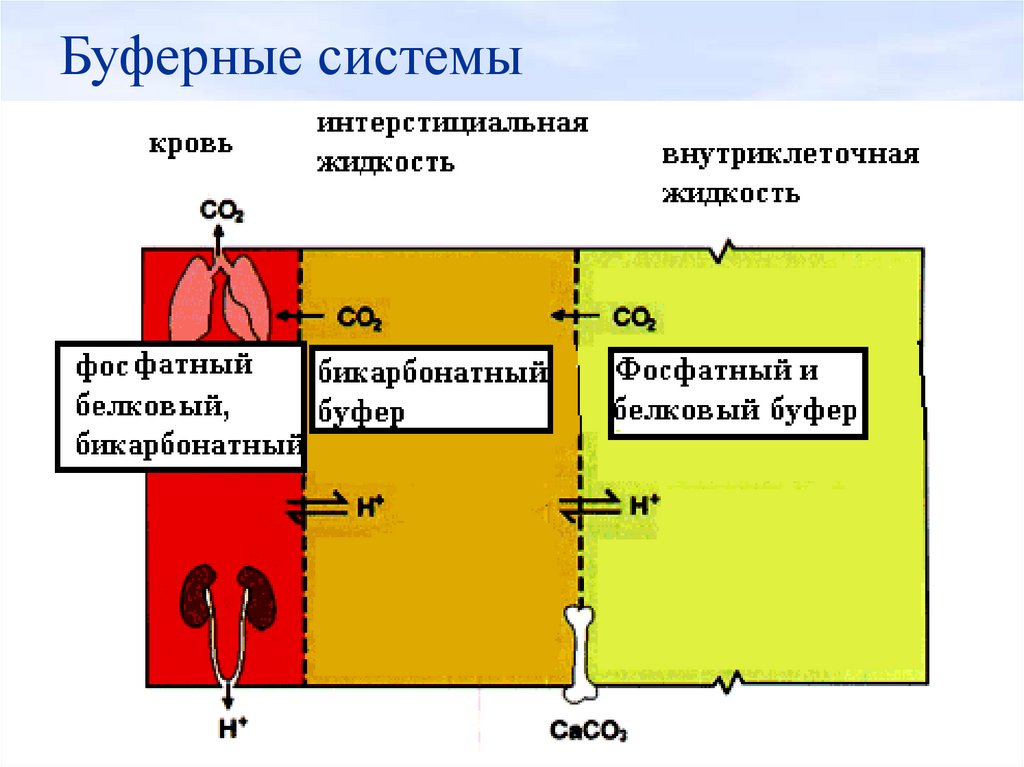 H+ + Белок• Бикарбонат: H+ + HCO3-