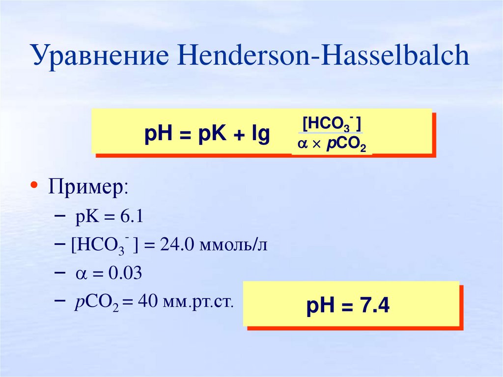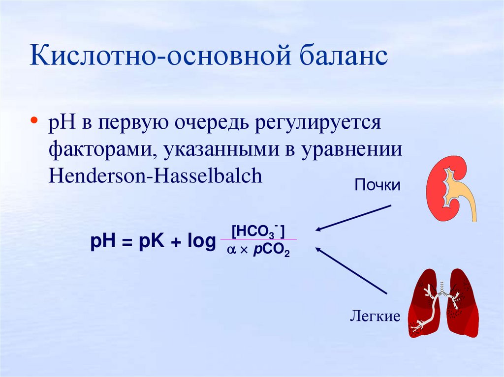 • pН в первую очередь регулируетсяфакторами, указанными в уравнении