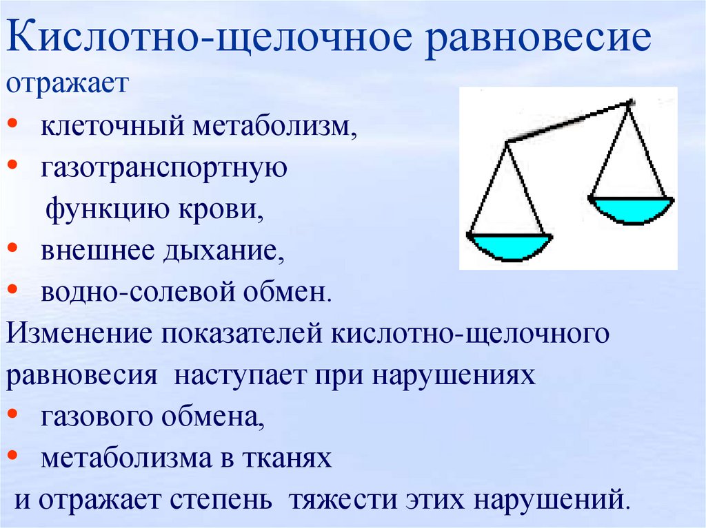 2. Кислотно-щелочное равновесие – соотношение концентрации водородных и гидроксильных ионов в жидкостях организма.