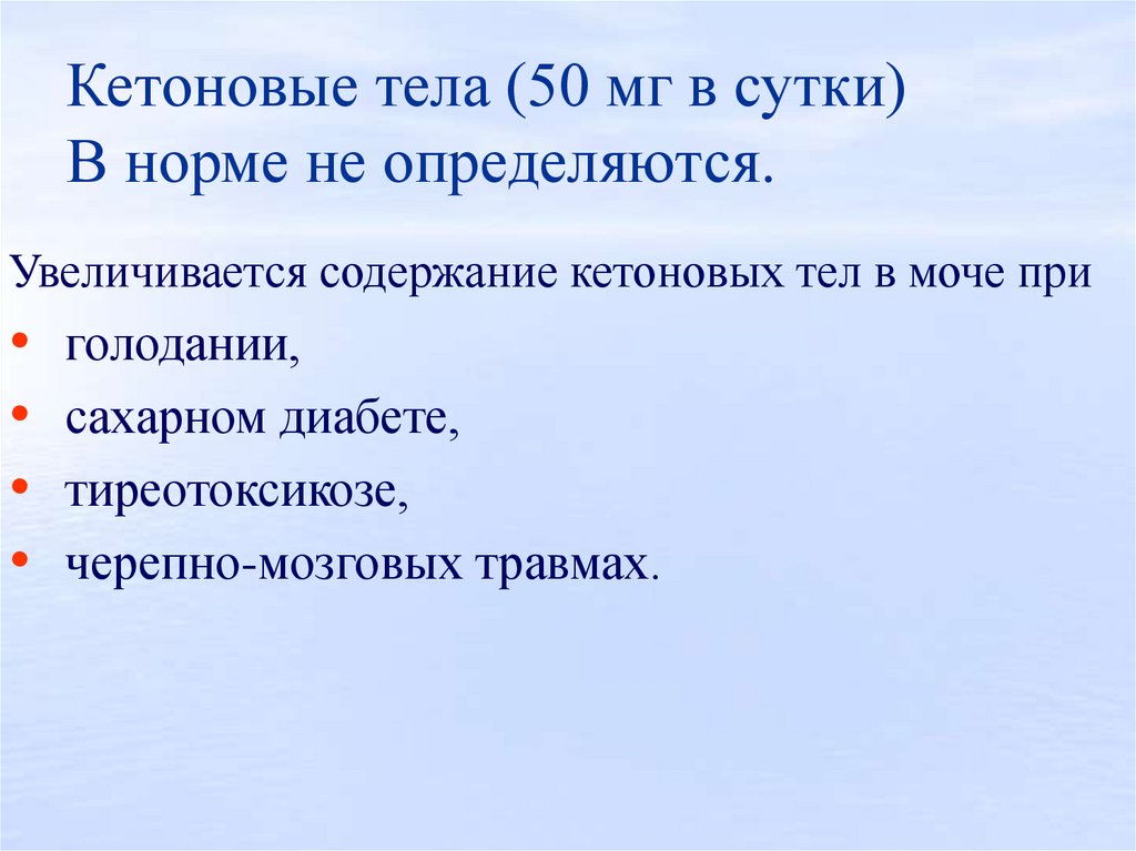68. Кетоновые тела (50 мг в сутки) В норме не определяются.