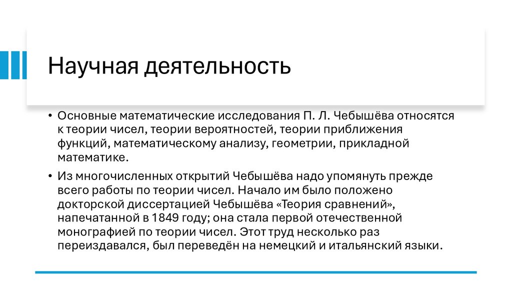 Научная деятельность• Основные математические исследования П. Л. Чебышёва относятся