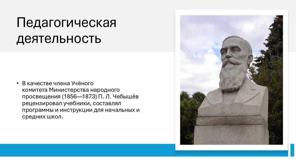 • Для Чебышёва не меньшее значение, чем конкретные научные результаты,