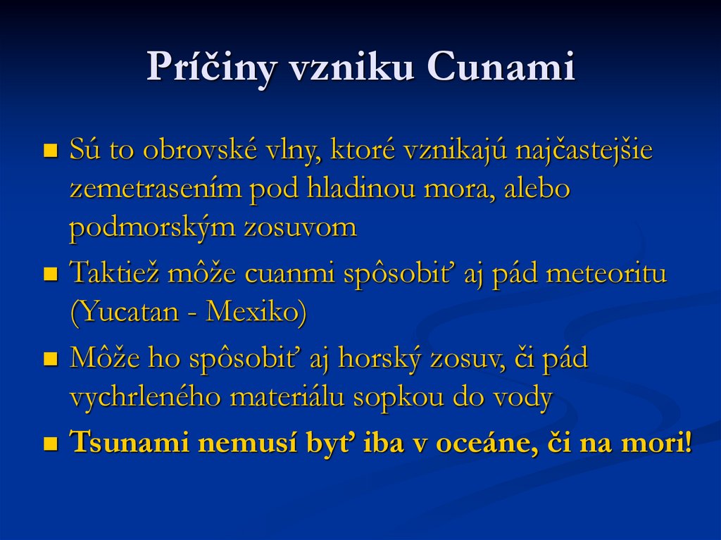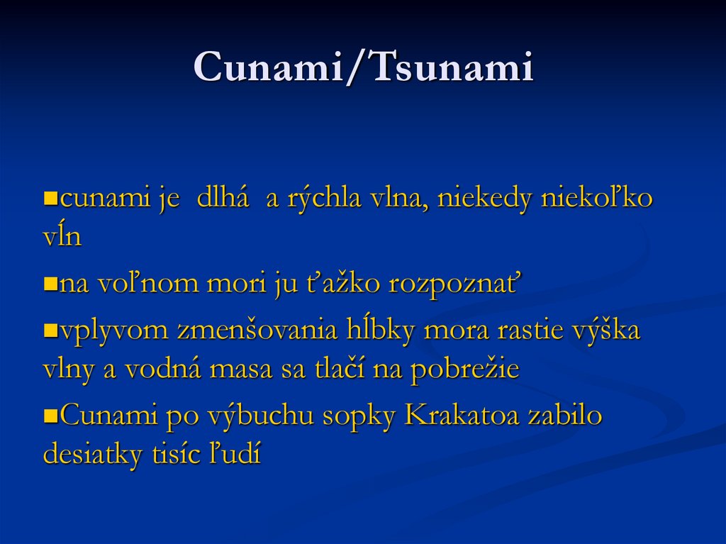 Sú to obrovské vlny, ktoré vznikajú najčastejšiezemetrasením pod hladinou mora, alebo