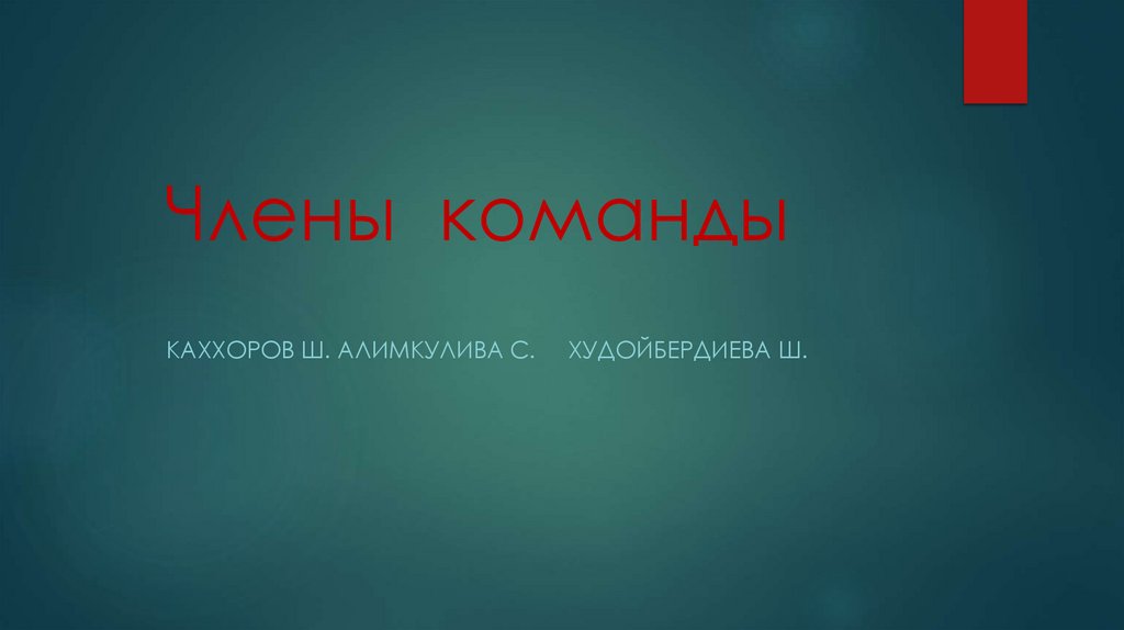 Члены командыКАХХОРОВ Ш. АЛИМКУЛИВА С.