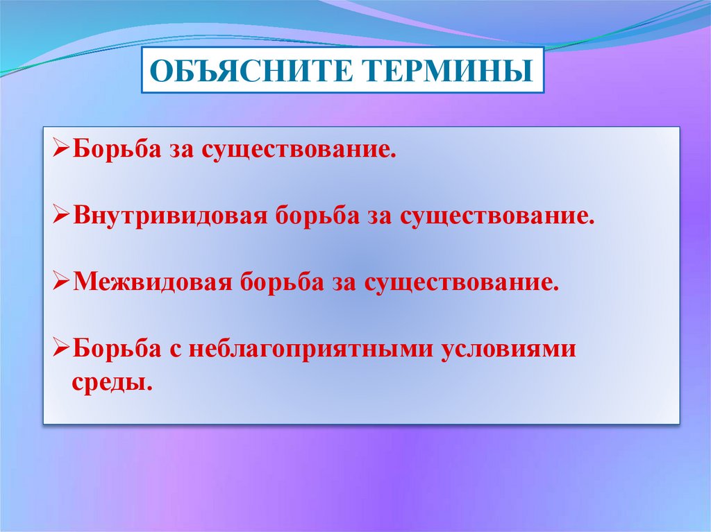 ОБЪЯСНИТЕ ТЕРМИНЫБорьба за существование.