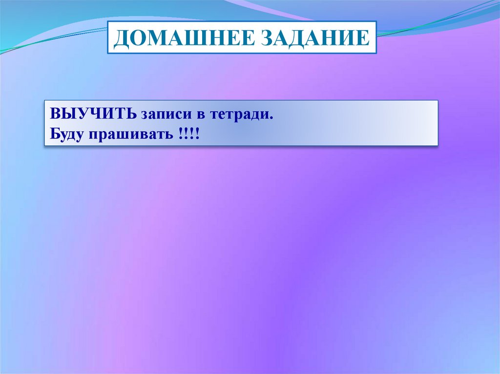 ДОМАШНЕЕ ЗАДАНИЕВЫУЧИТЬ записи в тетради.