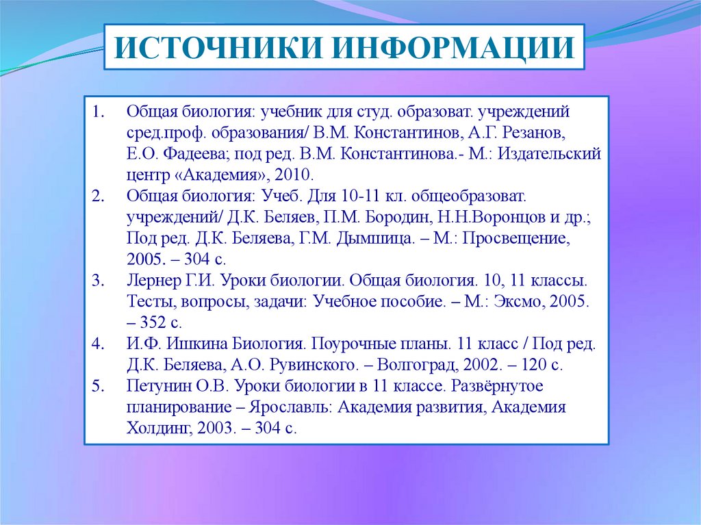 ИСТОЧНИКИ ИНФОРМАЦИИ1.