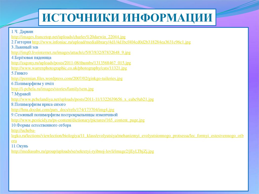 ИСТОЧНИКИ ИНФОРМАЦИИ1.Ч. Дарвин