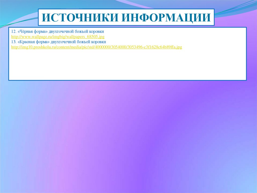 ИСТОЧНИКИ ИНФОРМАЦИИ12. «Чёрная форма» двухточечной божьей коровки