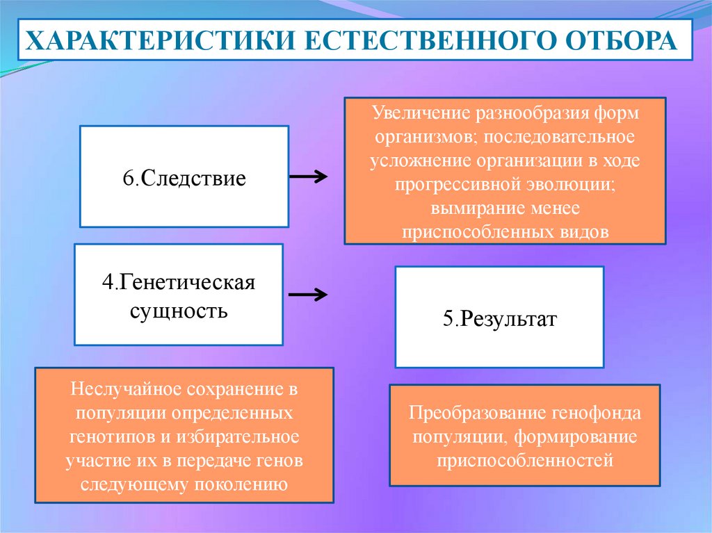 ХАРАКТЕРИСТИКИ ЕСТЕСТВЕННОГО ОТБОРА6.Следствие
