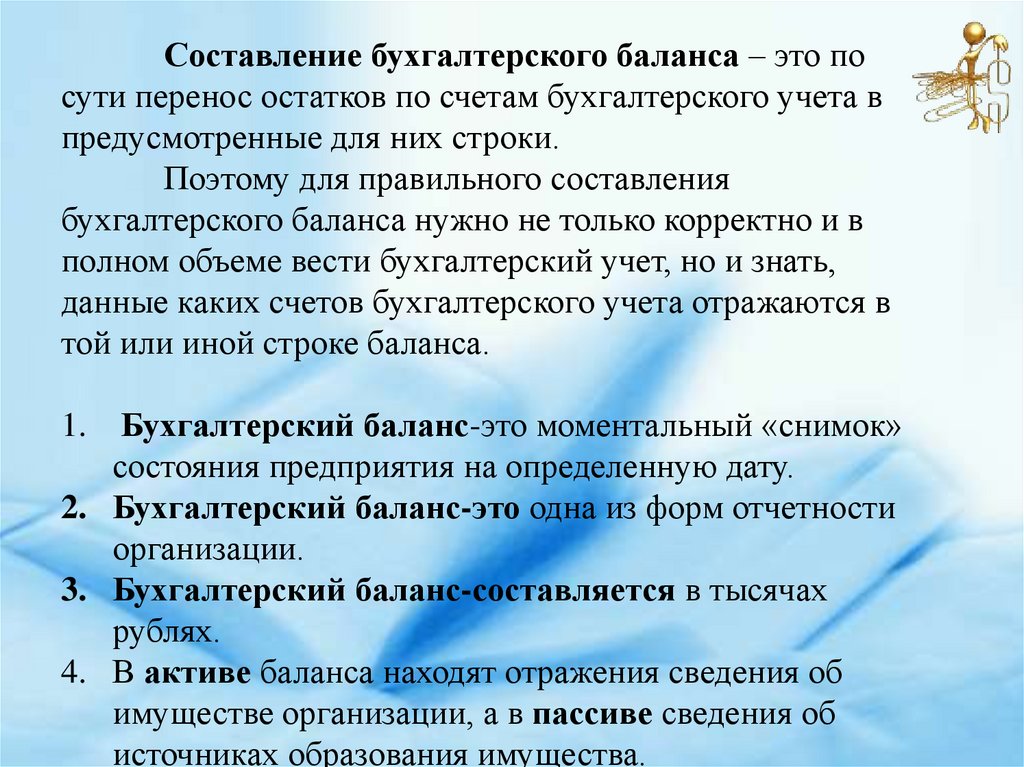 Составление бухгалтерского баланса – это посути перенос остатков по счетам бухгалтерского учета в