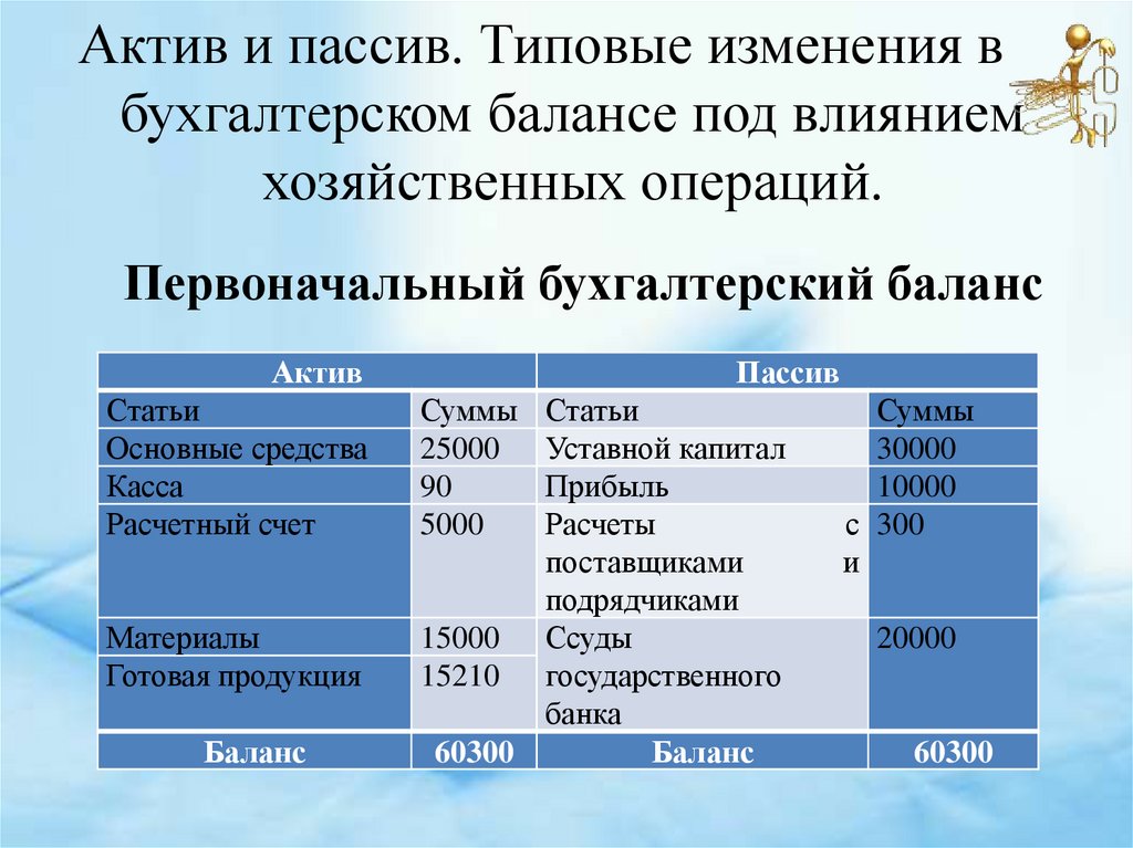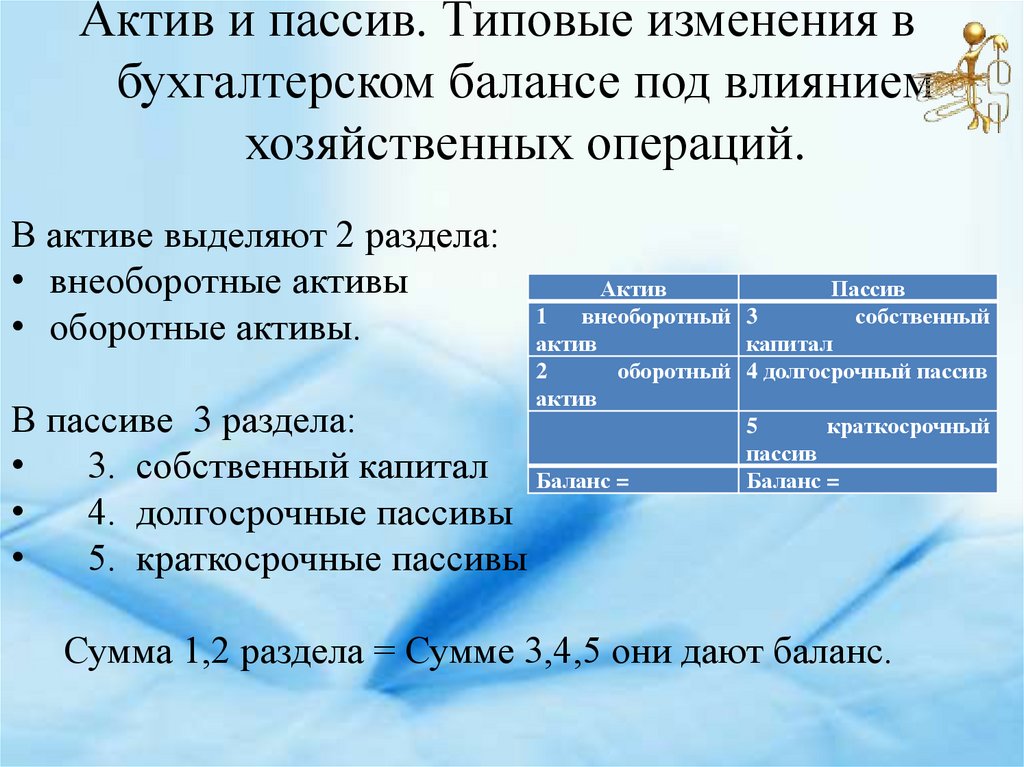 Актив и пассив. Типовые изменения вбухгалтерском балансе под влиянием