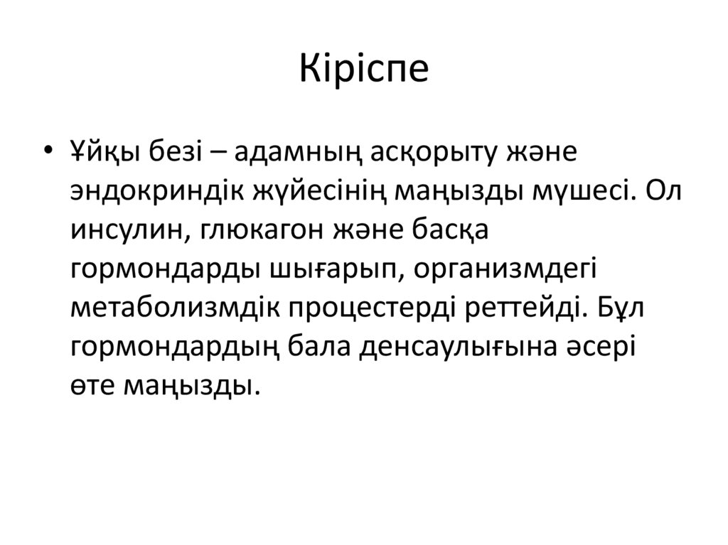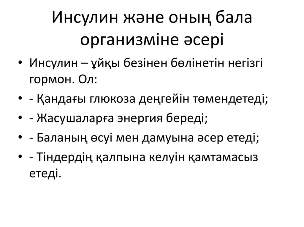 Ұйқы безінің гормондарыныңбала организміне әсері