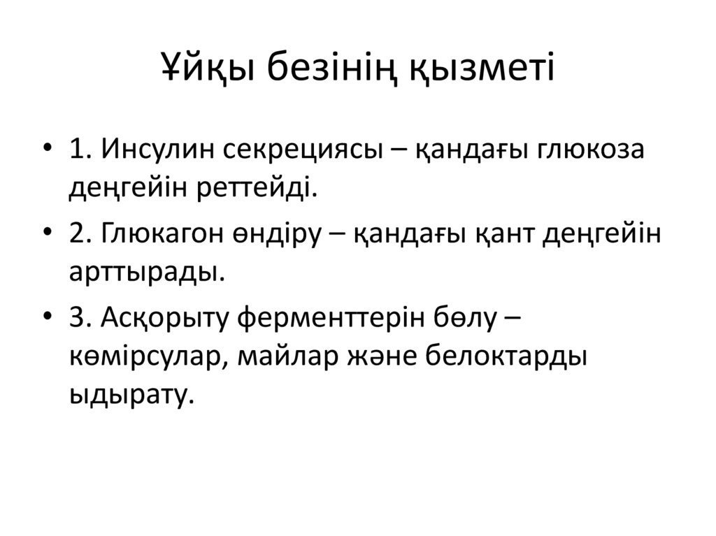 • Инсулин – ұйқы безінен бөлінетін негізгі