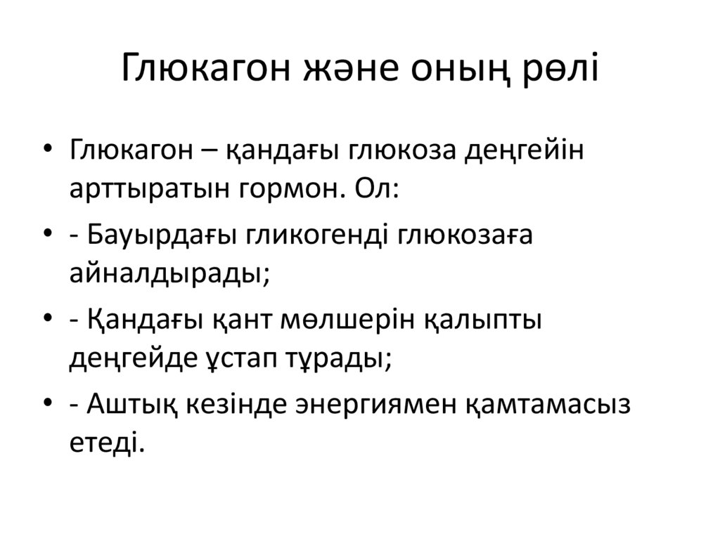 Глюкагон және оның рөлі• Глюкагон – қандағы глюкоза деңгейін