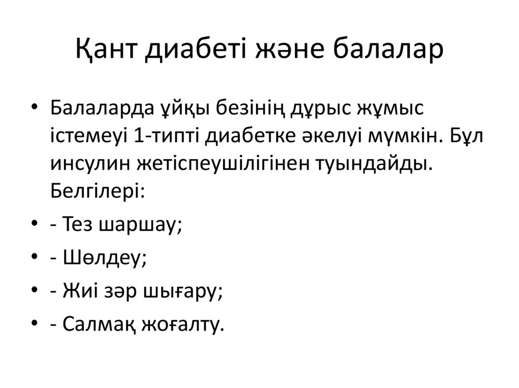 Қант диабеті және балалар• Балаларда ұйқы безінің дұрыс жұмыс