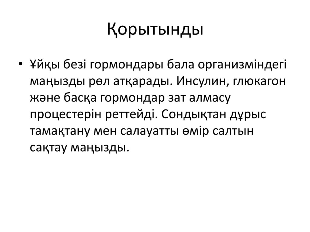 Қорытынды• Ұйқы безі гормондары бала организміндегі