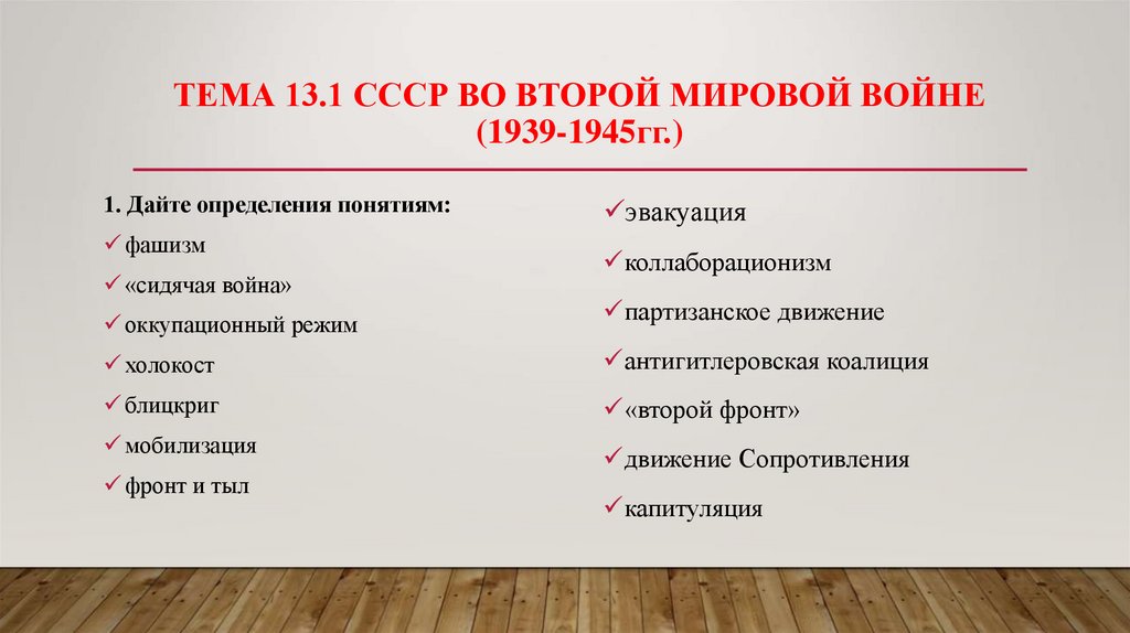 1. Тема 13.1 СССР во второй мировой войне (1939-1945гг.)