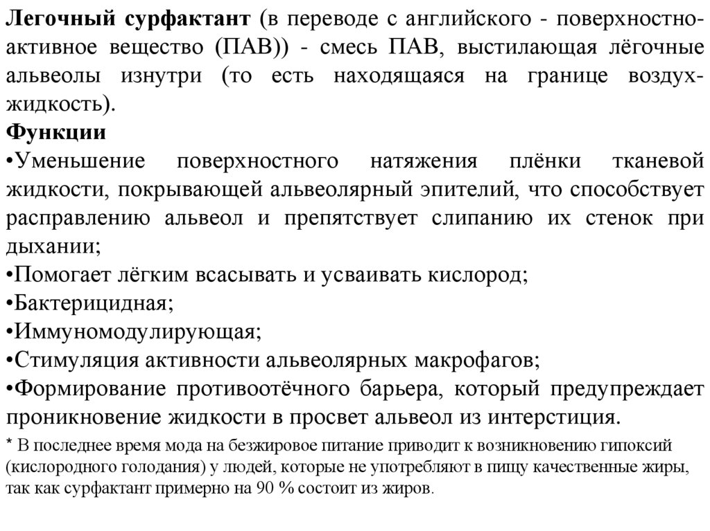 Легочный сурфактант (в переводе с английского - поверхностноактивное вещество (ПАВ)) - смесь ПАВ, выстилающая лёгочныеальвеолы изнутри (то есть находящаяся на границе воздухжидкость).